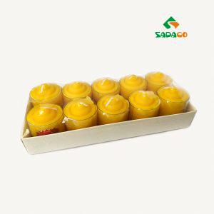 Small Cylindrical Yellow Wax Candle Plastic Wrap with Sticker